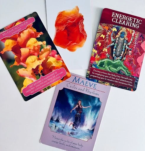 If the Carnelian card is giving us the green light to start exploring the paths before us, then the Energetic Clearing card is like the insurance we need before putting the keys in the ignition to drive off into the future.